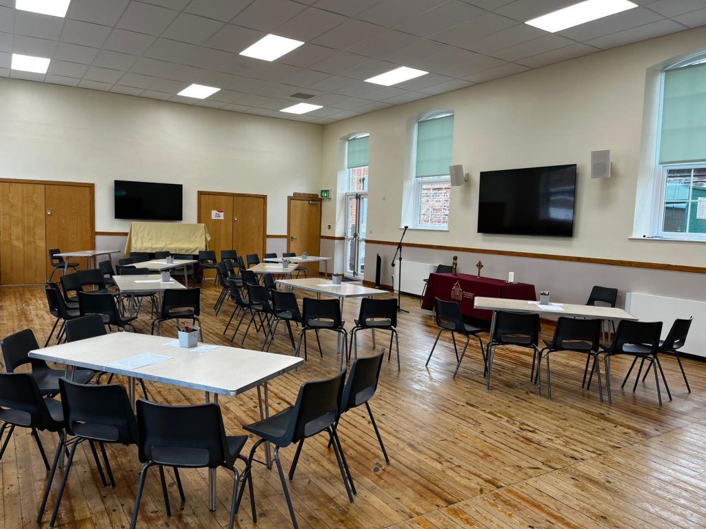 Toilet and disabled facilities are available in the corridor leading to the hall.